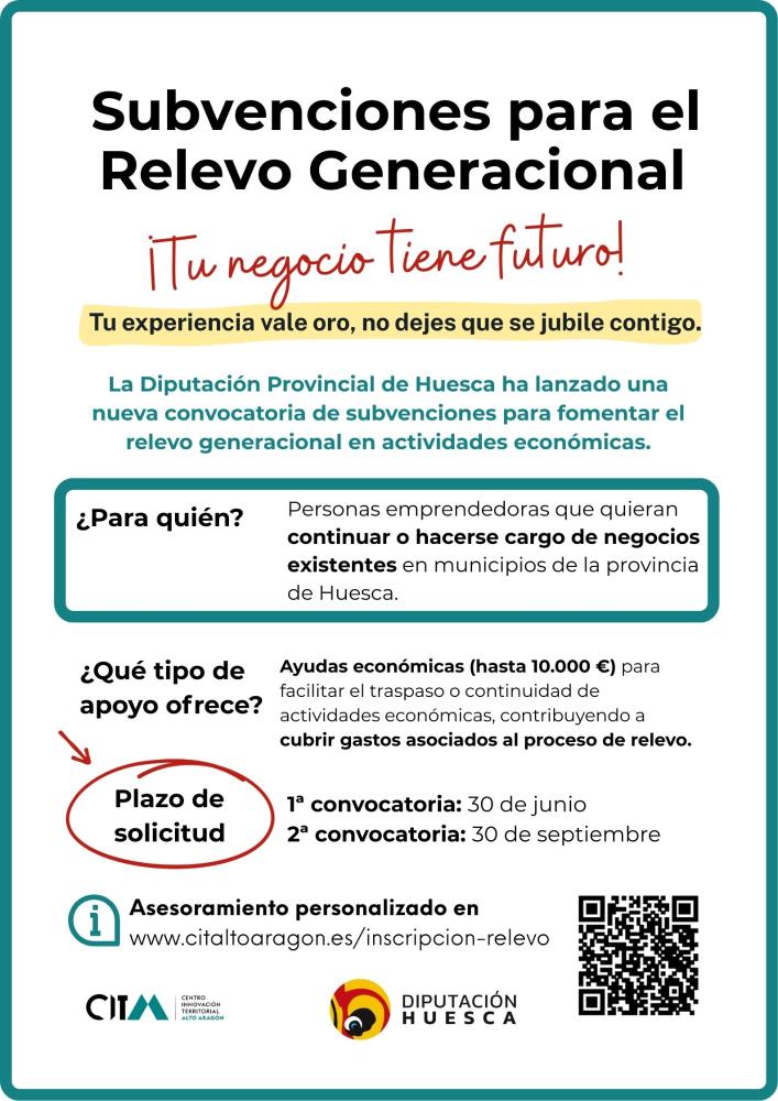 Podrán ser beneficiarios de estas ayudas las personas físicas o jurídicas que adquieran un negocio o actividad que se traspase o venda por jubilación del titular o cese de la actividad en el periodo comprendido entre el 01/01/2026 y el 30/09/2026, en todos los municipios de la provincia de Huesca, exceptuando la capital.