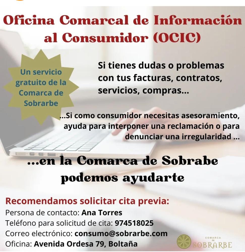 Desde el año 2000, la entonces Mancomunidad de Sobrarbe comenzó a dar este servicio a través de la Oficina Comarcal de Información al Consumidor, para que tanto consumidores y/o usuarios que necesiten información o formular una reclamación o denuncia, puedan hacerla dirigiéndose a: