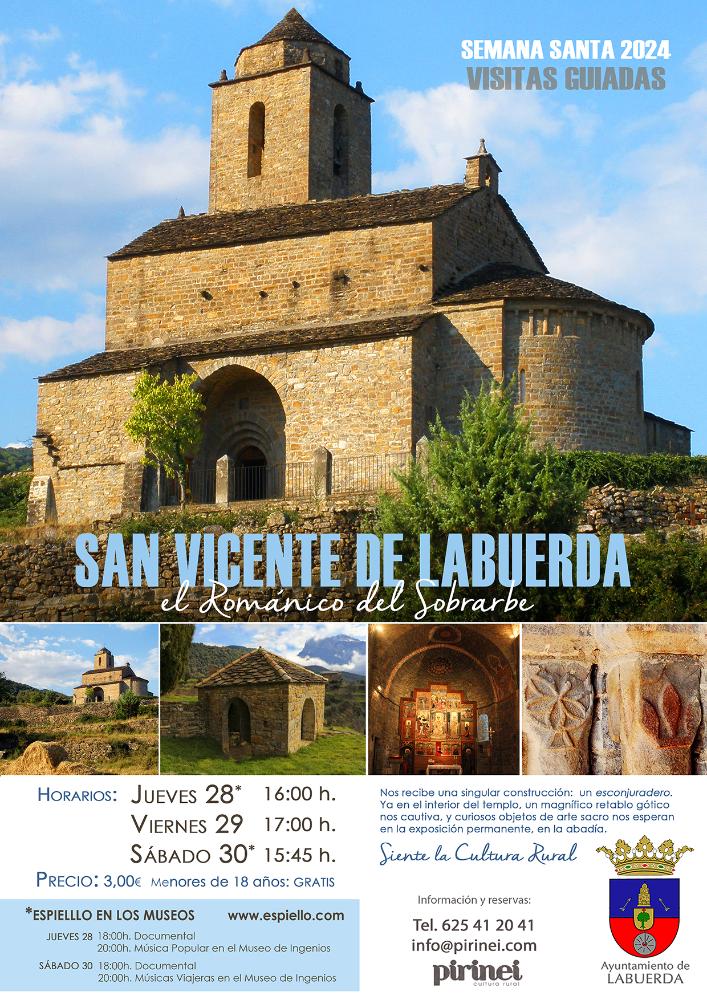 San Vicente de Labuerda, el románico del Sobrarbe Whatsapp: San Vicente de Labuerda, el románico del Sobrarbe Fecha 27 marzo 2024 Calendario visitas guiadas Semana Santa 2024 Horarios, jueves 28 a las 16:00 h - viernes 29 a las 17:00h - sábado 30 a las 15:45 h Galería imágenes
